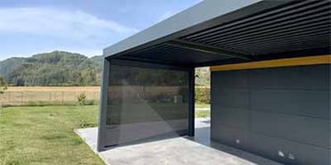 Grâce au store ZIP vertical, il est possible de fermer sa pergola tout en préservant l’élégance de la structure.