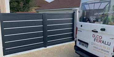 Nous vous proposons la fourniture et la pose de portails en aluminium. De fabrication française, les portails HORIZAL se déclinent en une large gamme s’adaptant au style de votre jardin et de votre maison. Plein ou ajouré, personnalisez votre portail. Choisissez également la couleur de la peinture de finition ainsi que sa dimension. Votre portail peut être à ouverture manuelle ou motorisée pour entrer et sortir de votre maison plus facilement.